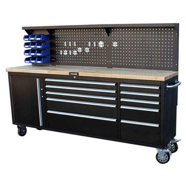 Esta versátil combinación de banco de trabajo y armario para herramientas incluye un armario con ruedas y una resistente encimera de madera de caucho de 38 mm. El cajón y la puerta están fabricados en robusto acero galvanizado de 0,8 mm de espesor, lo que garantiza un rendimiento robusto y fiable. La cómoda y el cuerpo del cajón están fabricados en acero laminado en frío, con un espesor de entre 0,7 mm y 0,8 mm, lo que proporciona durabilidad para un uso intensivo.