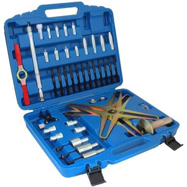 Juego profesional para el montaje y desmontaje correcto de embragues bimasa tipo SAC, evitando daños y manteniendo el embrague en la posición adecuada. Esto aumenta la precisión del trabajo al alinear el disco de embrague con el cojinete de empuje y el cojinete guía.